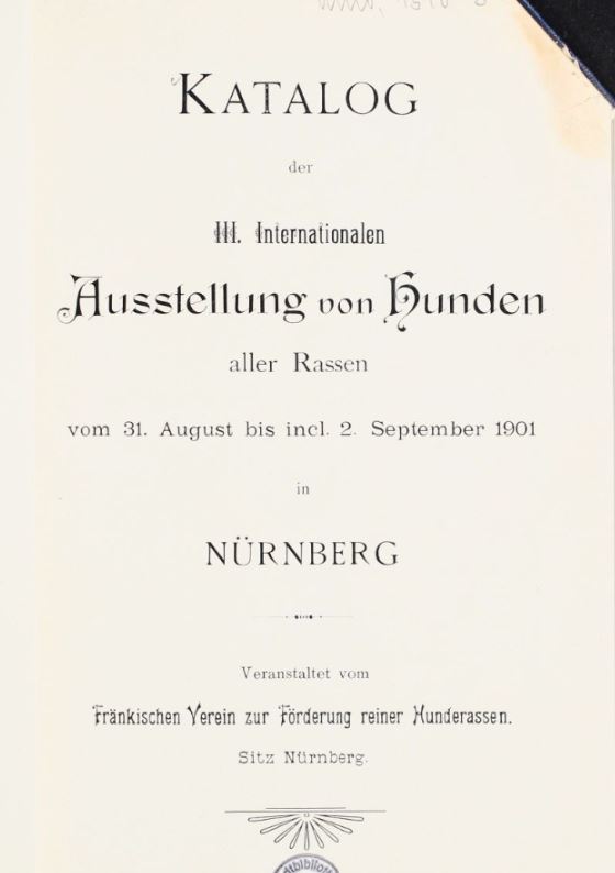 Katalog der III. Internationalen Ausstellung von Hunden aller Rassen Nürnberg 1901
