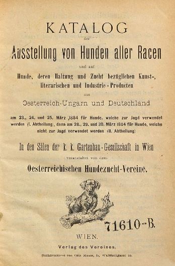 Katalog der Ausstellung von Hunden aller Rassen und auf Hunde, deren Haltung und Zucht bezüglichen Kunst-, literarischen und Industrie-Producten... Wien 1884